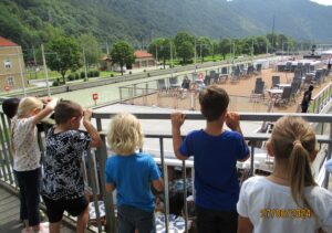 Die künftigen Schulanfäger fuhren mit dem Bus nach Jochenstein zum "Haus am Strom". Dort bekamen sie eine interessante Führung zum Thema "Wasser". Die Kinder konnten viel ausprobieren und entdecken: kleine Tiere im Wasser fangen, Wasserläufe graben, Aquarelle malen... . Zum Abschluss ging die Gruppe zur Schiffsschleuse und konnte beobachten, wie ein Kreuzschiff die Schleuse passierte.