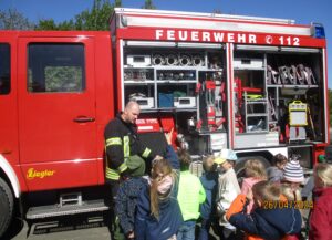 Die Freiwillige Feuerwehr Kellberg besuchte uns im Kindergarten. Klaus und Lukas, der der 1. Kommandant der Feuerwehr Kellberg ist, zeigten uns welche Ausrüstungsgegenstände ein Feuerwehrmann hat. Danach durften die Kinder die Ausrüstung genau anschauen und auch ausprobieren. Im Anschluss zeigten sie uns noch das Feuerwehrauto von Kellberg. Die Kinder staunten, was sich alles in einem Feuerwehrauto befindet.