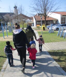 Am Frühlingsanfang machen wir uns auf die Suche nach dem Frühling. Dazu sind die Kinder der Frösche-Gruppe in Kellberg unterwegs.