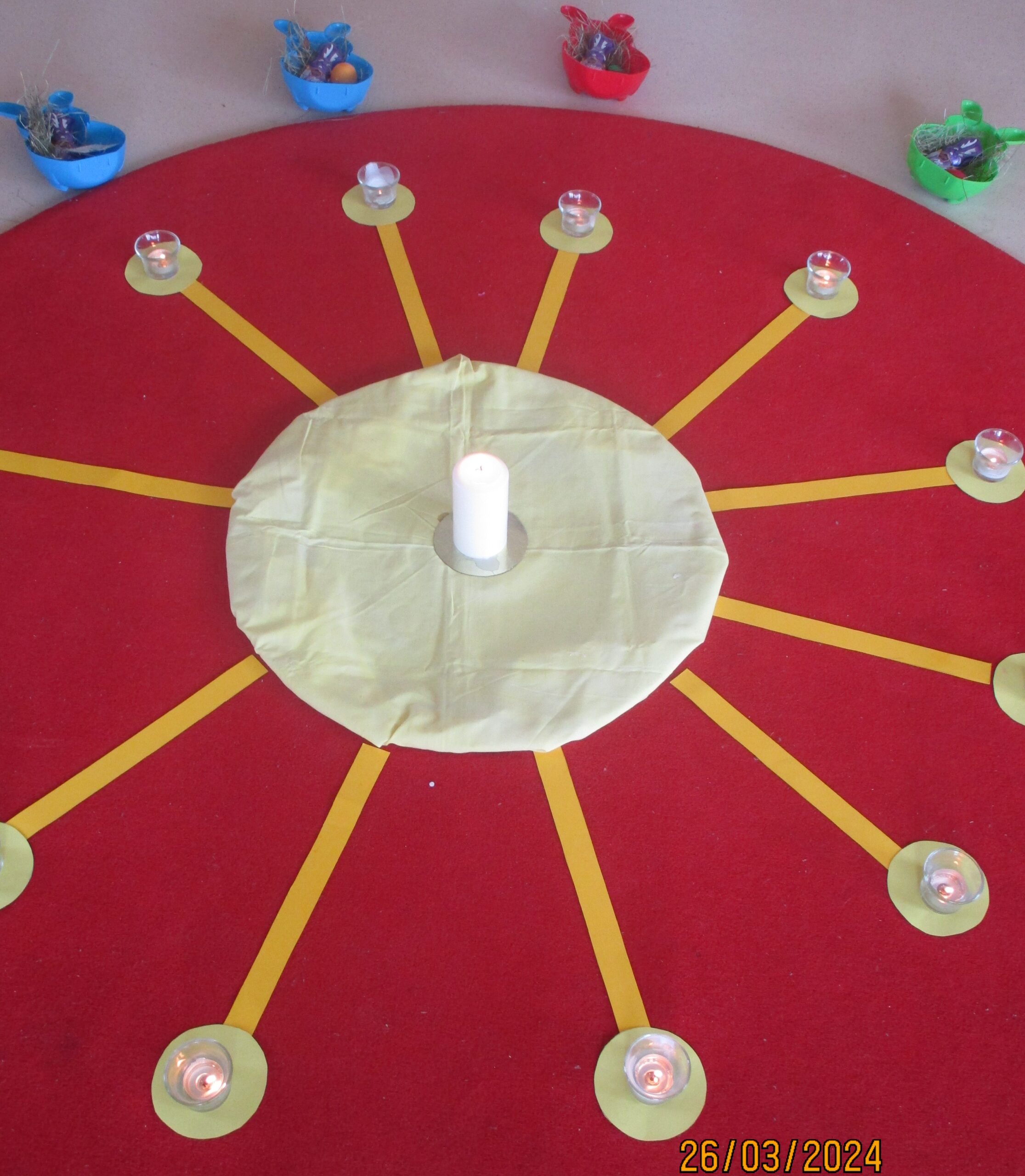 Der Frauenbund bindet diese Palmbuschen. Der Kindergarten spendet die bunten Ostereier, die in den Palmbuschen gebunden werden.